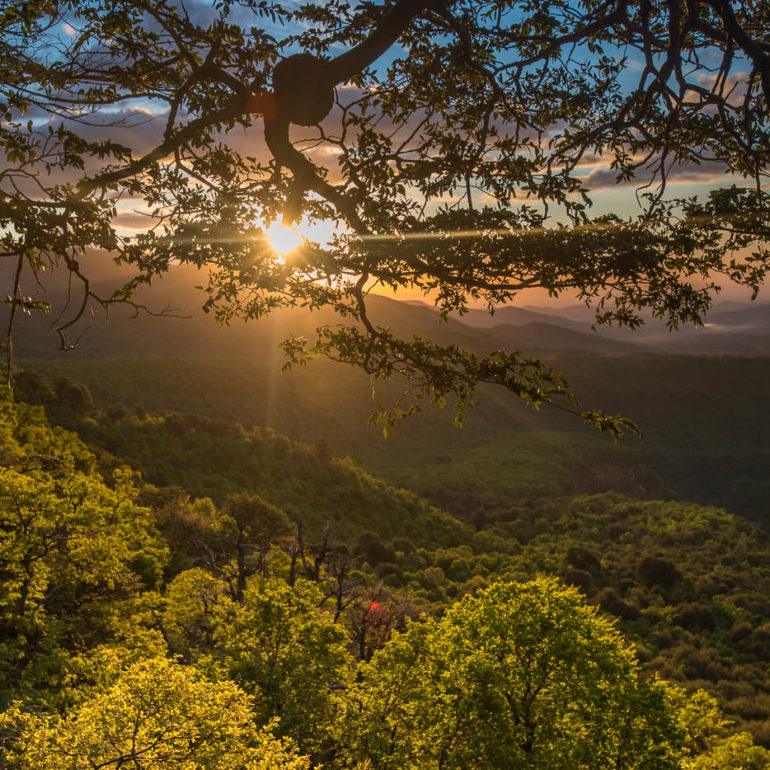Bäume werfen Schatten, Insekten krabbeln am Waldboden und Moos leuchtet in dunklen Grüntönen.
